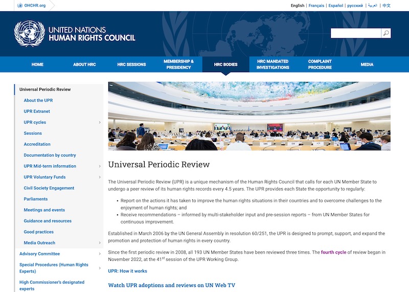 * UPR 4th cycle – Key documents* Upcoming deadlines* Upcoming reviews* Upcoming adoptions* Meetings and events* Guidance and resources* Latest news